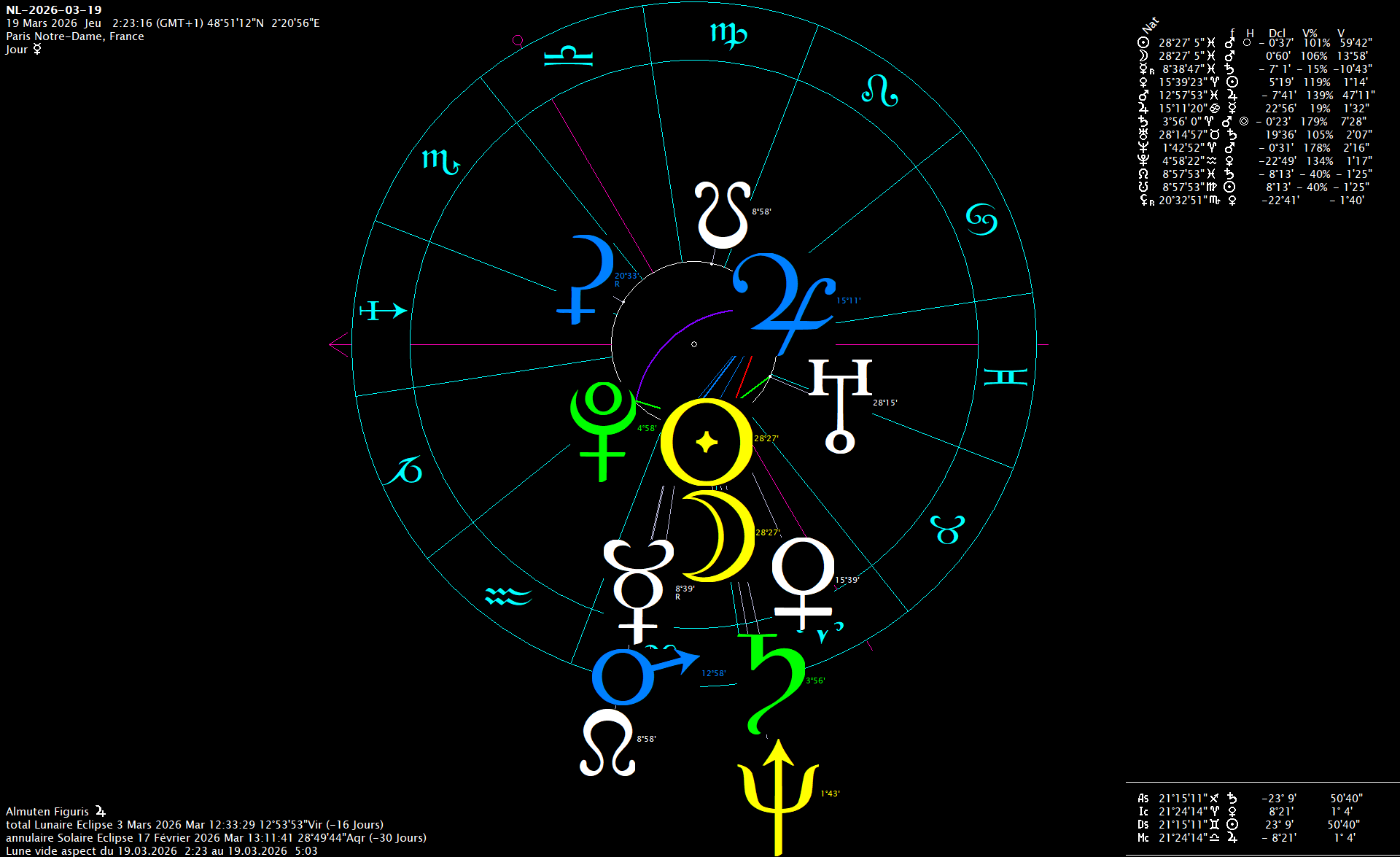 Nouvelle Lune du jeudi 19 mars 2026, 02h23'16", Paris