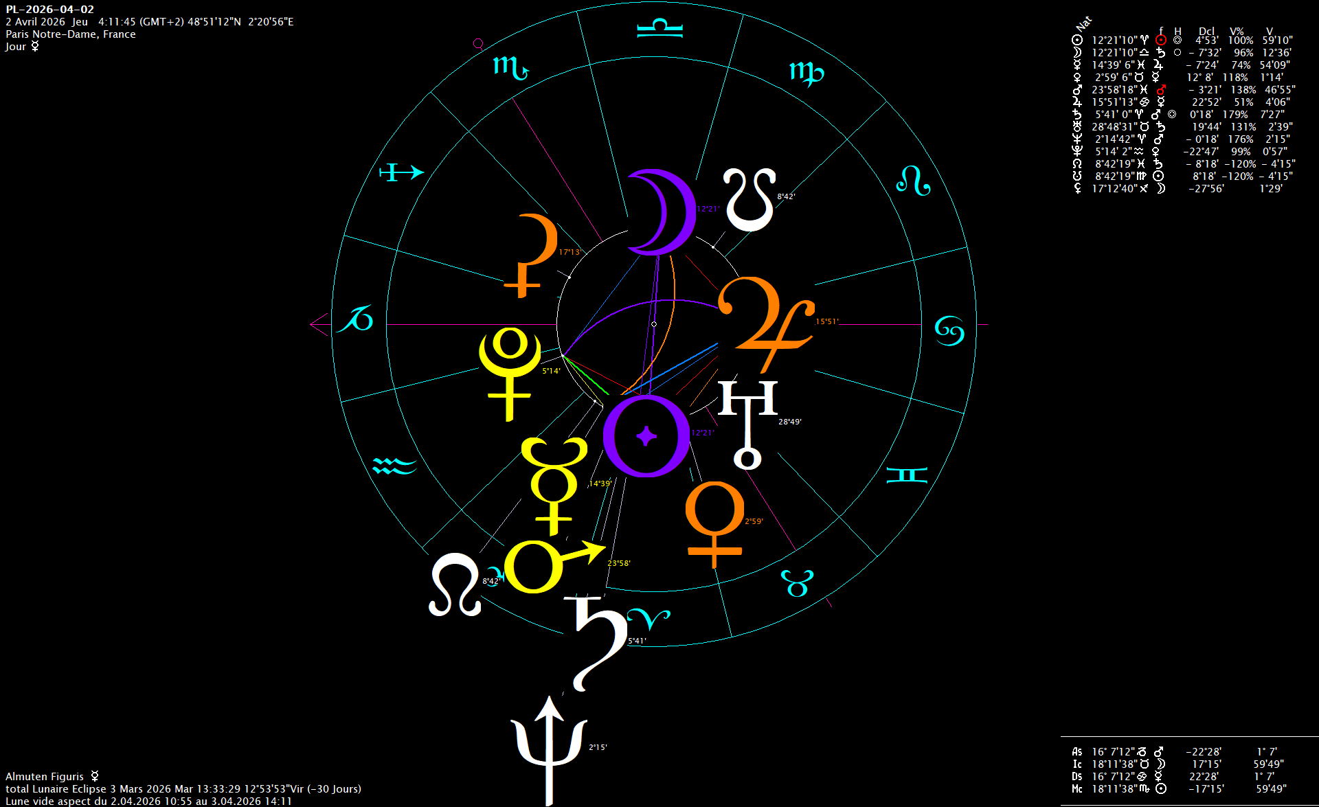 Dimanche 12 janvier 2025 à 00h01'49" : retrait du Dragon rétrograde de l'axe Bélier-Balance